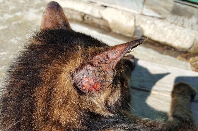 – Nên đeo loa cho mèo, để không liếm phải thuốc bôi.
